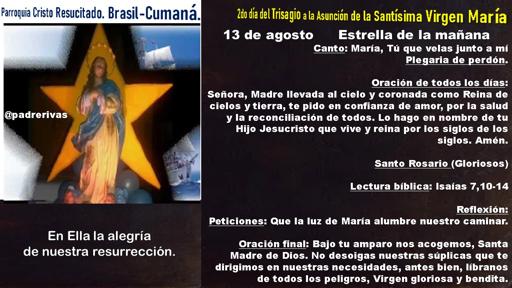 Trisagio a la Santísima Virgen María que sube a los cielos. (Asunción)