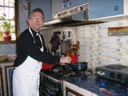 y el Padre Marcelo en su cocina |