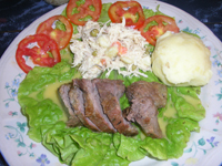 CARNE AL HORNO CON ENSALADA DE GALLINA |