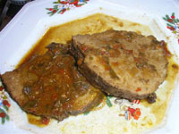 Se usa muchacho redondo y se deja en un licuado de cebolla, papelón, clavito dulce, sal, pimienta, aceite de oliva. Luego, después de la maceración se escurre y se pone en aceite muy caliente con un poco de papelón y se le da un color dorado. Más tarde se le pone un poquito de agua y se deja a fuego lento, para que después se le gregue el liquido de la maceración y se pica en rodajas para dejarlo terminar. Se acompña con puré de papas o con arroz o con ensalada de pollo