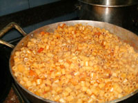 Se hace la pasta como de costumbre. Antes se empeiza con la salsa a la criolla. Se cortan cebollas, ajo y se sofrien, luego se le grega tomate también picado y se sigue sofriendo. Aparte se llevan a la licuadora el resto del tomate, que a su vez, se mezcla con pasta de tomate, sal y pimienta. Se le agrega al sofrito y se dejan sudar a fuego lento. Para último se le agrega queso semi duro rallado. Se sirve en una funte hondo y se acompaña con pan