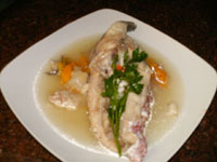En una olla con aceite de oliva (poquito) se coloca cebolla, aji dulce y se deja medio transparentar y de inmediato se coloca el pescado en rodajas para que comience a sudar. A los cinco minutos se le agrega un vaso de vino blanco y a los otros cinco un vaso con agua, sal, pimienta y tapado se esperan otros diez minutos y se sirve con una rama de perejil. Se acompaña con arroz o papas al vapor.