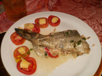 De la tierra el cordero y del mar el mero. Y muy bien este decir, pues el mero es de carne muy noble. Se lava bien , se sal, pimienta y se abre por el centro y allí se le coloca un sofrito de cebolla, pimentón, ají dulce y camarones, se envuelve en papel de aluminio con un chorrito de vino blanco y se lleva al horno por 20 minutos. Debe quedar tierno y jugozo. Se acompaña con ensalada o un buen puré de papas.