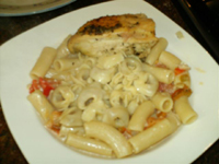 La salsa espera la pasta jamas lo contarrio. Abundante agua con sal a hervir, al estar se agrega la pasta ys e deja al dente. Aprte en un caldero al fuego se coloca un poquito de mantequilla con aceite de oliva y allí cebolla, ajo y tomate en cubos. Se deja sofreir. Al estars e le agrega un pote de tomates pelados y se deja afuego lento con sal y pimeinta hasta que se cocine bien. Se tare a pasta corta ys e termina de cocinar ahí. Se sirve con pollo asado, jamón a la plancha o simplemente sola con quso parmesado rallado.