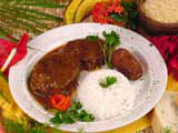 Se usa el muchcho redondo, por ser más blando. Se limpia y se lava. En un caldero grande se coloca aceite de maíz y cuandoe esté caliente se le grega azúcar morena y cuando caramelice se coloca a dorar el muchacho, de lado y lado. Se retira del caldero y allí se coloca cebolla, ají dulce, pimentón, cuando esté transparente se le agrega tomate, luego, vino tinto y agua, sal, pimenta y hojas de laurel. Se vuleve a colocar el muchacho y se deja cocinar hasta que ablande. Al estar se deja reposar, para cortarlo en rodajas. El liquido donde se cocinó el muchacho, se lleva a la licuadora y se mezcla. Se lleva otra vez al caldero y las rodajas se colocan por unos minutos. Si quiere que la salsa espece se le gerga un poquito de harina de trigo. Se acompña con arroz blanco y casabe. |