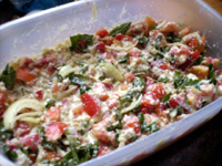 Se pica en trozos tomate, cebolla y albahaca y se deja reposar en agua con sal. Aparte se mezcla yogurt natural, limón, sal, ricota, mostaza y aceite de oliva. Para luego unir todo y servirlo para que acompañe un jugoso pollo a la plancha.