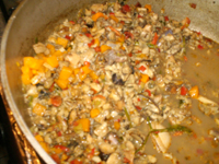 Se compra pulpo y se cocina, no botar el agua, mejillón, madre perla y algunas conchas. Se lavan muy bien y se colocan a marinar con aceite de oliva, limón y orégano. (2 horas) Luego se busca un caldero y allí con un picadillo de cebolla, ajo, ají dulce, pimentón se ponen a sofreír. Al estar ya transparentes se le agrega el agua del cocimiento del pulpo, cúrcuma y un poquito de ahuyama en pedacitos. Sal, pimienta y se sirve |