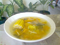 El pollo de gran consumo debe estar fresco y se esogen las pechugas. Se d¡coloca un aolla al fuego con un poquito de aceite para sofreír cebolla, ajo, cebollín y al estar transparente se le grega el agua y cuando hieva se le coloca las pechugas sin piel. Al mismo tiempo el jojoto, al mazorca en pedazos. Cuando el pollo esté semi blandos e le agerga la ahuyama, la papa, zanahoria, apio españa y se deja cocinar. Cuando vaya a estar balndo, sal, pimienta y fideos para rematar con abundante cilantro.