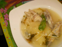 El cartílago de pollo es el mejor tratamiento natural contra la artritis, sobre todo la de tipo reumatoide. El cartílago de pollo contiene colágeno Tipo II. Aunque el más común es el que se encuentran en las patas de esta ave, David E. Trentham, de la Universidad de Harvard, recomienda utilizar mejor el del esternón por su mayor contenido de glucosamina y condroitina que ayudan al desarrollo del colágeno para la formación de los leucocitos que actúan para contrarrestar esos problemas artríticos. El cartílago se procesa a baja temperatura para asegurar la actividad biológica, sostiene Trentham. Se lavan muy bien las paticas y s eles quita ese cuero que las recubre. Se dejan un buen rato de un agua de limón y vinagre. Luego se llevan a una olla donde ya se ha transparentado cebolla, ajo, cebollín. Se le agrega agua y se dejan que ablanden. Luego aparte se pican en trozos medianos papas y al estar blandas las paticas se le agregan las paticas, fideos, sal, pimienta y se deja a fuego lento. Cuando ya va a estar se le coloca cilantro. Se sirve bien caliente. Es una maravilla para tener un cutis muy saludable y no sufrir de artritis. |