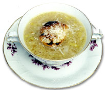 En una olla se ponen la mantequilla, el aceite y el ajo porro y se fríe a fuego mediano hasta que comience a dorar, unos 15 a 18 minutos. No se debe quemar, pues se pone amargo. Se agregan la pimienta y la harina revolviendo bien. Se cocina unos 2 minutos. Se agrega el vino, se cocina hasta reducir a la cuarta parte, aproximadamente unos 2 minutos y se agrega el consomé. Se cocina unos 15 minutos más. Se agrega la sal y la crema, se revuelve, se cocina 1 a 2 minutos y se retira del fuego lista para servir. Puede servirse adornada con ruedas delgadas de pan francés tostado con mantequilla y queso parmesano rallado.