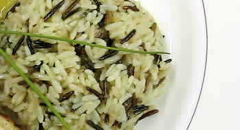 Se hace un caldo de pollo. Aparte se dora la cebolla con mantequilla, se incorpora el arroz y dorarlo durante dos minutos. Añadir el caldo de pollo y remover. Hornear durante 20 minutos.