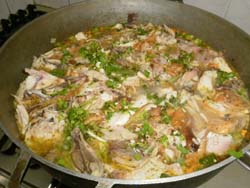 El arroz es una clave del buen y del diario comer. Este plano es muy útil a la hora de un apuro. Compre dos pollos asados y los pica en trozos pequeños. Caldero con aceite, muy poco, agregue zanahoria en cubos, apio españa y ajo. Deje freír y luego agregue el arroz y de inmediato cúrcuma para pintar el arroz, deje sofreír y agregue por cada taza de arroz dos de agua. Sal y deje cocinar a fuego alto hasta que hierva, tape y llévelo a fuego lento. Termine agregando perejil y sirva bien caliente. |