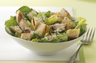 Vamos a utilizar un pollo asado, el cual los desmenuzamos y lo mezclamos con la lechuga. Luego preparamos una vinagreta con: aceite de oliva, jugo de limón, salsa inglesa, mostaza, azúcar, sal, pimienta, ajo triturado y queso parmesano rallado. Todo esto se vierte sobre el pollo y la lechuga con pan tostado.