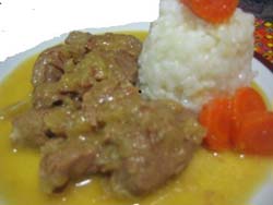 Sazonar el pavo con sal y pimienta. En un sartén colocar aceite con azúcar para sofreír el pavo hasta dorarlo. En el mismo sartén dorar ajos, cebollas en juliana. Al estar transparentes agregar el pavo, además la ralladura de la corteza de naranja, jugo de naranja y licor (Se puede cambiar por consomé). Dejar cocer lentamente hasta que el pavo esté tierno. Se puede acompañar con verduras al vapor y con baño de aceite con ajo. (Sofreír), también con arroz blanco. |