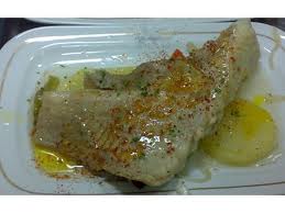 En un sartén aceite se coloca cebolla picadita, ajo y sal, al ir marchitándose se le agrega los trozos de raya, el vino blanco y medio litro de agua. Se da calor a fuego lento y se le agregan las papas en rodajas muy finas. Se saca un poquito de líquido del cocimiento y se licua con suficiente perejil. Se deja hervir y se sirve.